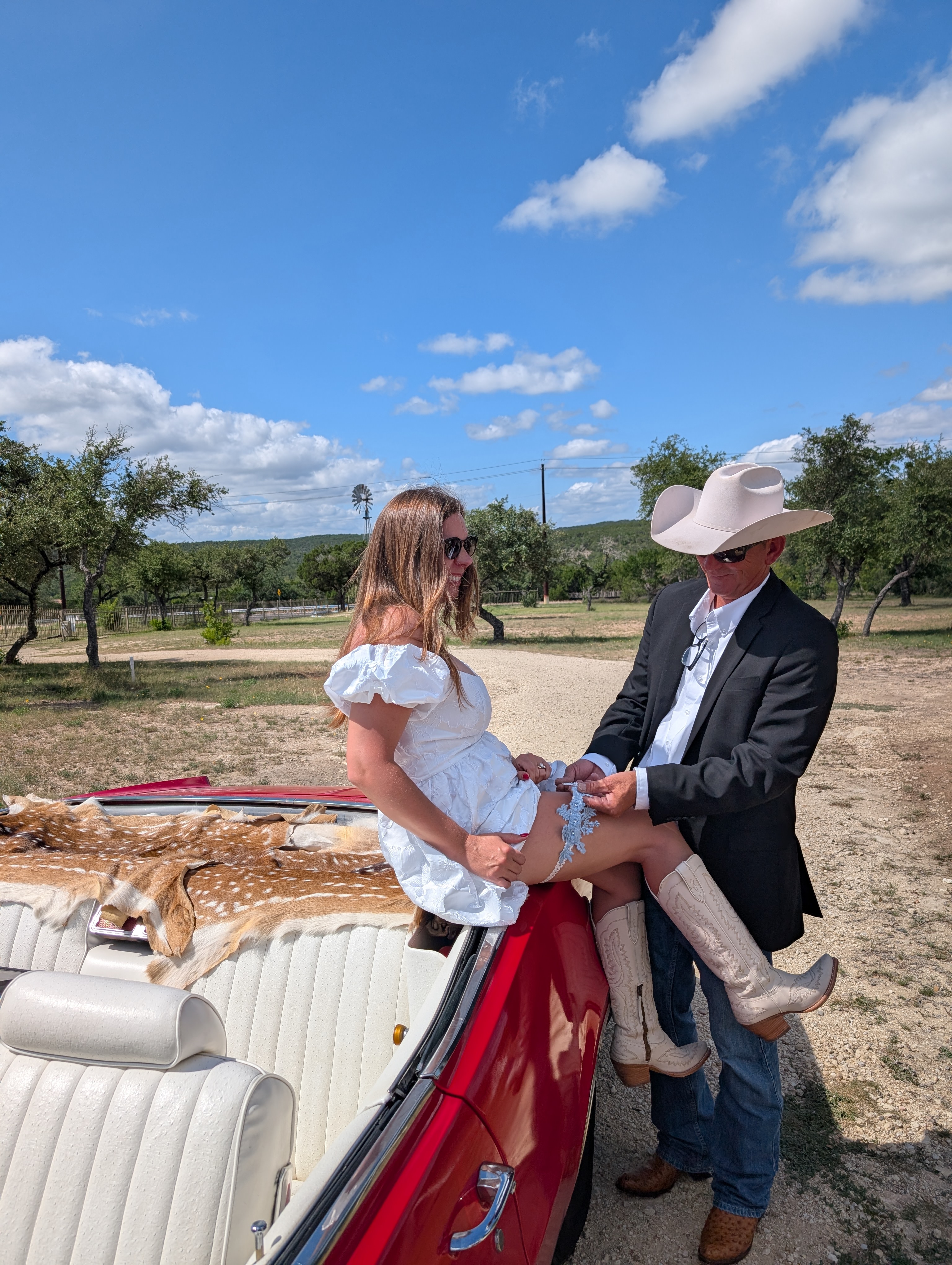 Our drive-up ceremony takes place at the beautiful Star Hill Ranch in Bee Cave, just minutes outside of Austin. Pull up to our staging area and our officiant will meet you at your car window.