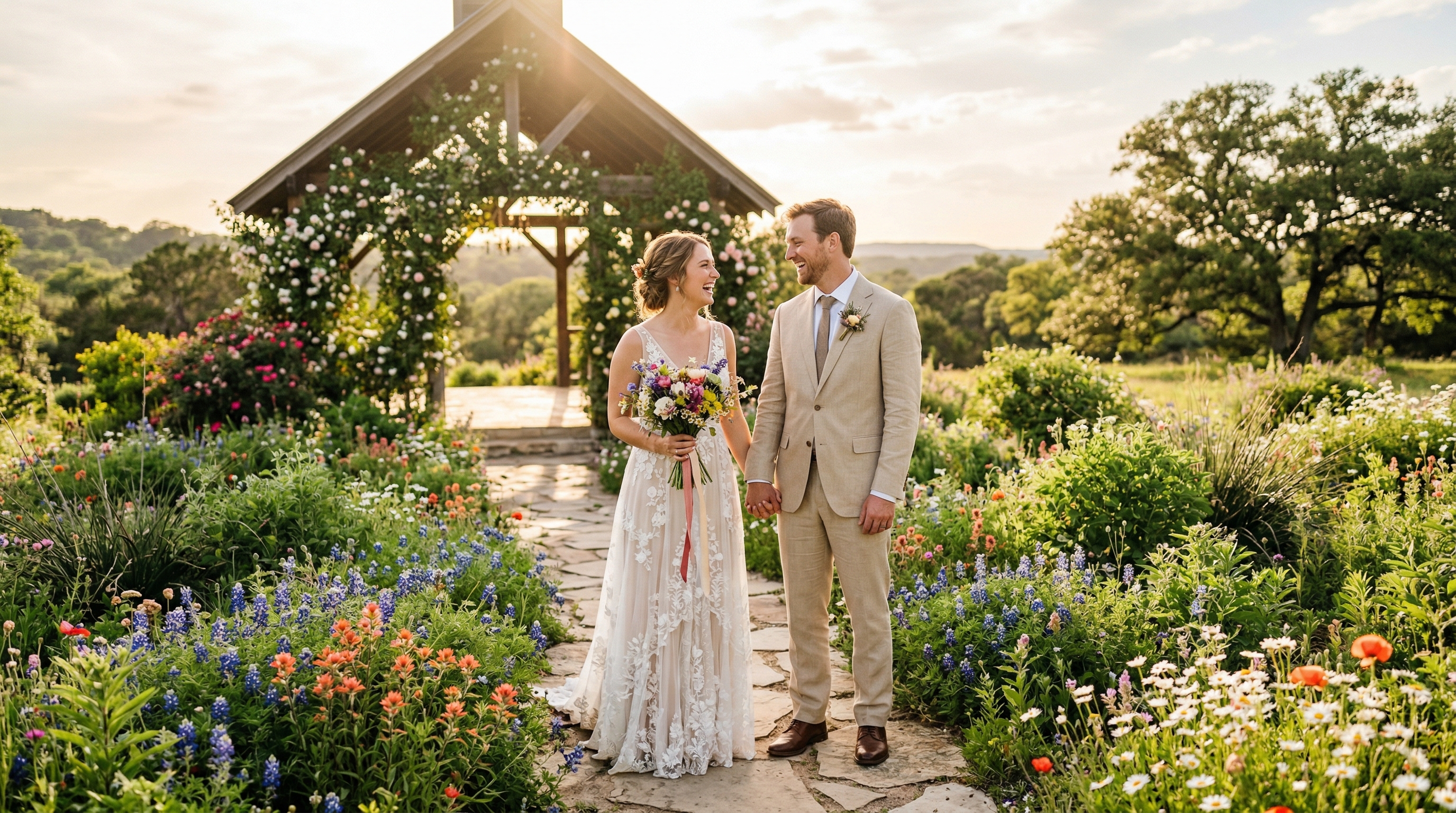 Skip the courthouse. Get married on May Day at Chapel of Love ATX, Austin's most romantic elopement venue at Star Hill Ranch.